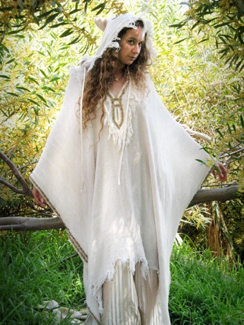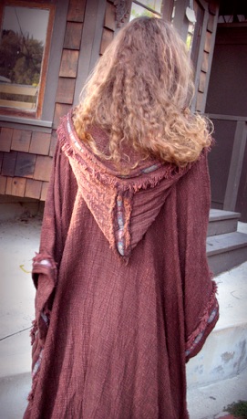 This unique, hooded garment is adorned with our signature frayed rag edges and trim. The Aramus is perfect for both men and women to wear over their costumes on a cold day, or to wear alone with Bloomers. The Aramus is a tribute to the Arthurian Legend and is available in varied lengths in our fine woven cotton rayon blends.